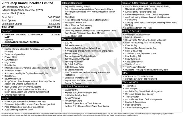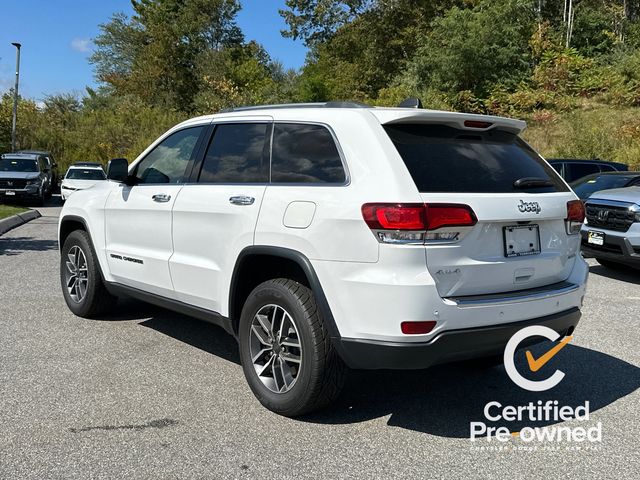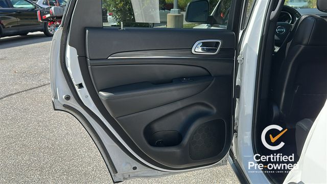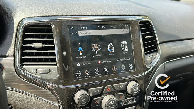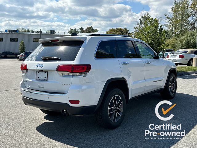 **Certified**, **Clean Carfax**, **4 Wheel Drive**, Bluetooth Phone/Audio, **Apple car play / Android Auto**, Grand Cherokee Limited, 4D Sport Utility, 3.6L V6 24V VVT, 8-Speed Automatic, 4WD, Bright White Clearcoat, Black Leather, 1-Year SiriusXM Guardian Trial, 230MM Rear Axle, 3.45 Rear Axle Ratio, 4-Wheel Disc Brakes, 4G LTE Wi-Fi Hot Spot, 6 Speakers, 8.4" Touchscreen Display, ABS brakes, Air Conditioning, Alloy wheels, AM/FM radio: SiriusXM, Anti-whiplash front head restraints, Apple CarPlay, Apple CarPlay/Android Auto, Audio memory, Auto-dimming door mirrors, Auto-dimming Rear-View mirror, Automatic temperature control, Brake assist, Bumpers: body-color, Compass, Delay-off headlights, Driver door bin, Driver vanity mirror, Dual front impact airbags, Dual front side impact airbags, Electronic Stability Control, Emergency communication system: SiriusXM Guardian, Four wheel independent suspension, Front anti-roll bar, Front Bucket Seats, Front Center Armrest w/Storage, Front dual zone A/C, Front fog lights, Front reading lights, Fully automatic headlights, Garage door transmitter, Google Android Auto, GPS Antenna Input, GPS Navigation, HD Radio, Heated door mirrors, Heated front seats, Heated steering wheel, Illuminated entry, Integrated Voice Command w/Bluetooth, Knee airbag, Leather Shift Knob, Leather Trimmed Bucket Seats, Low tire pressure warning, Memory seat, MOPAR Cargo Area Liner (DISC), MOPAR Slush Mats (DISC), Navigation System, Normal Duty Suspension, Occupant sensing airbag, Outside temperature display, Overhead airbag, Overhead console, Panic alarm, ParkView Rear Back-Up Camera, Passenger door bin, Passenger vanity mirror, Power door mirrors, Power driver seat, Power Liftgate, Power moonroof, Power passenger seat, Power steering, Power windows, Quick Order Package 2GH, Radio data system, Radio: Uconnect 4C Nav w/8.4" Display, Rear anti-roll bar, Rear reading lights, Rear seat center armrest, Rear window defroster, Rear window wiper, Remote keyless entry, Roof rack: rails only, Security system, SiriusXM Satellite Radio, SiriusXM Traffic Plus, SiriusXM Travel Link, Speed control, Speed-sensing steering, Speed-Sensitive Wipers, Split folding rear seat, Spoiler, Steering wheel mounted audio controls, Tachometer, Telescoping steering wheel, Tilt steering wheel, Traction control, Trip computer, Turn signal indicator mirrors, Variably intermittent wipers, Voltmeter, Wheels: 18" x 8.0" Tech Gray Diamond Cut.