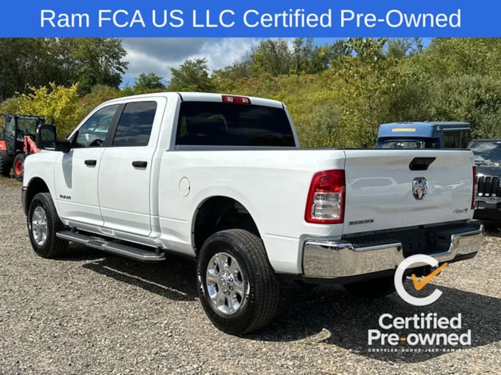 **Certified**, **Clean Carfax**, **4 Wheel Drive**, Bluetooth Phone/Audio, **Apple car play / Android Auto**, 2500 Big Horn, 4D Crew Cab, 6.4L V8, 8-Speed Automatic, 4WD, Bright White Clearcoat, Diesel Gray/Black Cloth, 2 Way Rear Headrest Seat, 2nd Row In Floor Storage Bins, 4 Way Front Headrests, 4-Wheel Disc Brakes, 40/20/40 Split Bench Seat, 4G LTE Wi-Fi Hot Spot, 8.4" Touchscreen Display, ABS brakes, Apple CarPlay, Auto Power-Folding Mirrors, Big Horn IP Badge, Black Exterior Mirrors, Bluetooth Handsfree Phone & Audio, Brake assist, Center Hub, Center Stack Storage Drawer, Cloth 40/20/40 Bench Seat, Connectivity - US/Canada, Dual front impact airbags, Dual front side impact airbags, Dual Glove Boxes, Electronically Controlled Throttle, Emergency communication system: SiriusXM Guardian, Exterior Mirrors Courtesy Lamps, Exterior Mirrors w/Heating Element, Exterior Mirrors w/Supplemental Signals, Foam Bottle Insert (Door Trim Panel), Footwell Courtesy Lamp, For Details, Visit DriveUconnect.com, For More Info, Call 800-643-2112, Forward & Reverse Utility Lights, Front anti-roll bar, Front Armrest w/Cupholders, Front Center Armrest w/Storage, Front Center Seat Cushion Storage, Front Fog Lamps, Front Seat Back Map Pockets, Global Telematics Box Module (TBM), Glove Box Lamp, Google Android Auto, GPS Antenna Input, Integrated Center Stack Radio, Integrated Voice Command w/Bluetooth, Leather Wrapped Steering Wheel, Level 1 Equipment Group, Locking Lower Glove Box, Low tire pressure warning, Manual Adjust 4-Way Driver Seat, Manual Adjust 4-Way Front Passenger Seat, Mirror Running Lights, Occupant sensing airbag, Overhead airbag, Passenger door bin, Power Adjust Mirrors, Power Adjustable Convex Aux Mirrors, Power Heated Fold Telescope Mirrors, Power Telescoping Mirrors, Premium Cloth 40/20/40 Bench Seat, Quick Order Package 2GZ Big Horn, Radio: Uconnect 5 W w/8.4" Display (A62), Rear anti-roll bar, Rear Dome w/On/Off Switch Lamp, Rear Folding Seat, Remote USB Port - Charge Only, Selectable Tire Fill Alert, SiriusXM Radio Service, SiriusXM Satellite Radio, Steering Wheel Mounted Audio Controls, Storage Tray, Tow Hooks, Wheels: 18" x 8.0" Polished Aluminum.