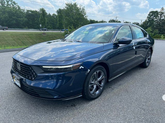 Canyon River Blue Metallic 2025 Honda Accord Hybrid EX-L 4D Sedan FWD eCVT 2.0L I4 DOHC 16V 51/44 City/Highway MPG