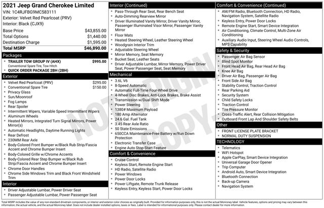 4WD, 1-Year SiriusXM Guardian Trial, 4G LTE Wi-Fi Hot Spot, 6 Speakers, 7 & 4 Pin Wiring Harness, 8.4" Touchscreen Display, Air Conditioning, Apple CarPlay, Apple CarPlay/Android Auto, Auto-dimming Rear-View mirror, Automatic temperature control, Class IV Receiver Hitch, Front fog lights, Fully automatic headlights, Garage door transmitter, Google Android Auto, GPS Antenna Input, GPS Navigation, HD Radio, Heated front seats, Heated steering wheel, Integrated Voice Command w/Bluetooth, Leather Trimmed Bucket Seats, Memory seat, Navigation System, ParkView Rear Back-Up Camera, Power driver seat, Power moonroof, Power passenger seat, Power windows, Quick Order Package 2BH, Radio: Uconnect 4C Nav w/8.4" Display, Security system, SiriusXM Satellite Radio, SiriusXM Traffic Plus, SiriusXM Travel Link, Wheels: 18" x 8.0" Tech Gray Diamond Cut.